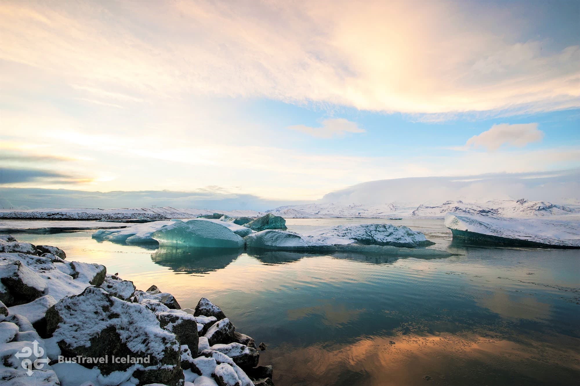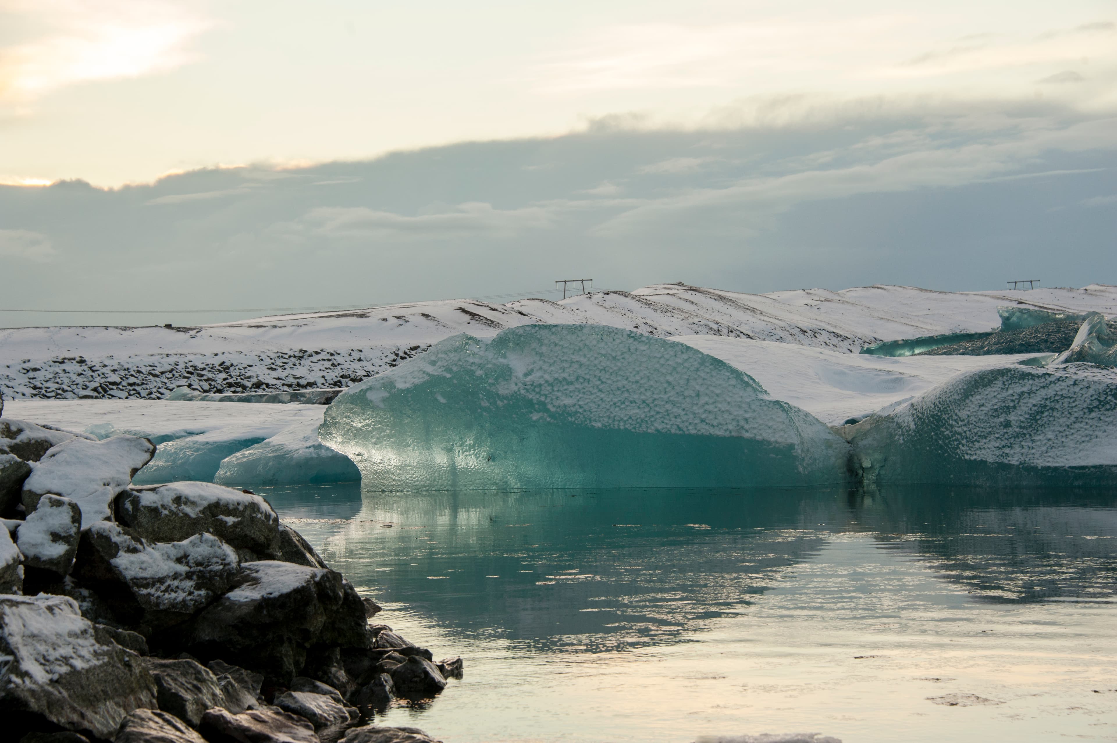 After the ice cave adventure, enjoy a delicious lunch in Vík before driving to the stunning Fjaðrárgljúfur canyon. Walk along the canyon rim and be captivated by the sheer scale and beauty of this geological marvel. Continuing eastward, you'll arrive at Jökulsárlón, a glacial lagoon filled with massive icebergs. Take a boat tour or simply enjoy the mesmerizing sight of icebergs floating in crystal-clear waters. Don't miss the nearby Diamond Beach, where ice chunks from the lagoon wash up on the black sand, creating a magical contrast.
