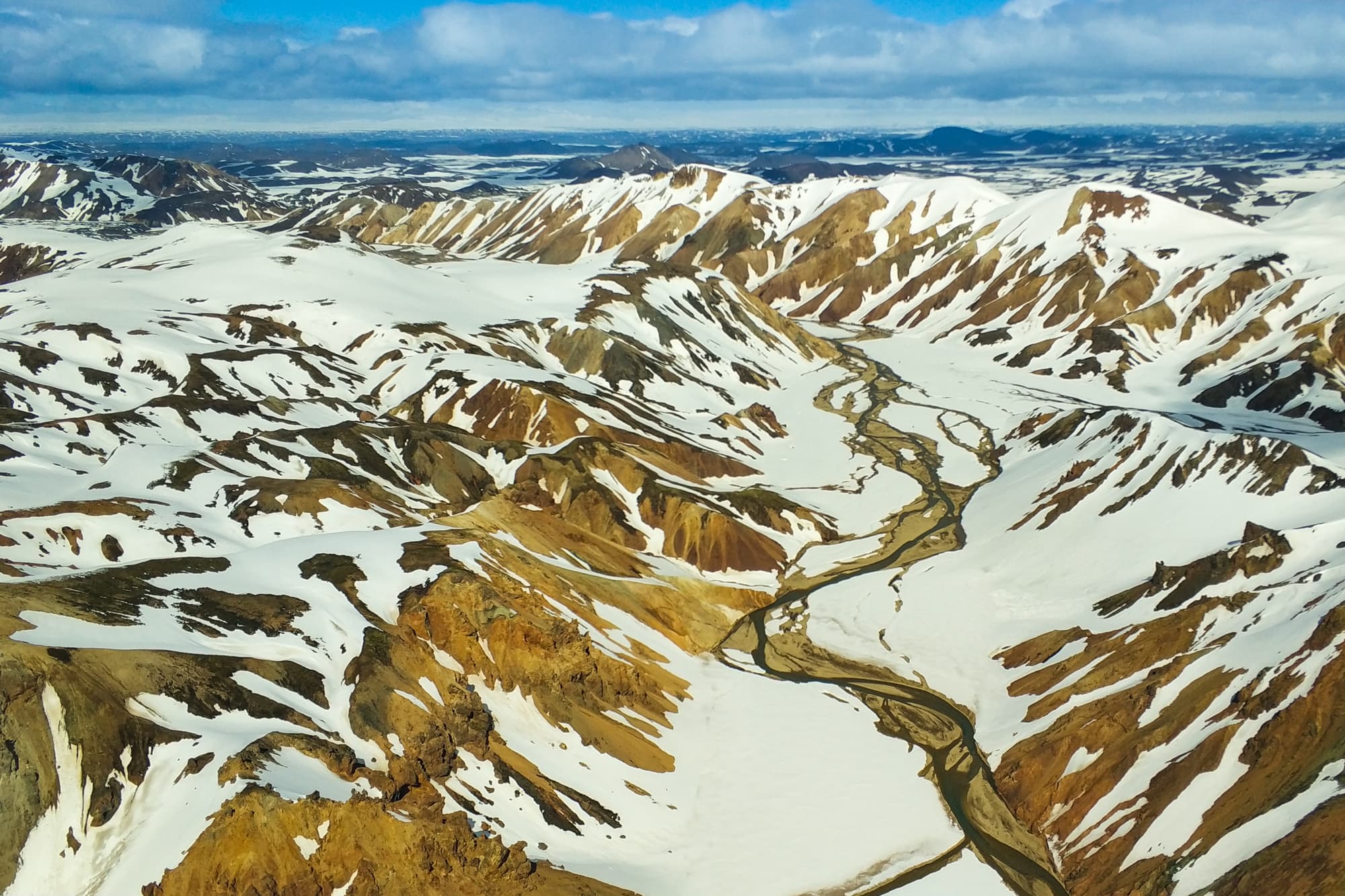We will fly over the south coast where we follow the coastline to Þórsmörk Valley towards Eyjafjallajökull and Mýrdalsjökull glaciers. From there we head further into the highlands to the colorful mountains of Landmannalaugar and one of our most active volcanos Hekla. On the way back to Reykjavík we will pass the beautiful waterfall Háifoss.
