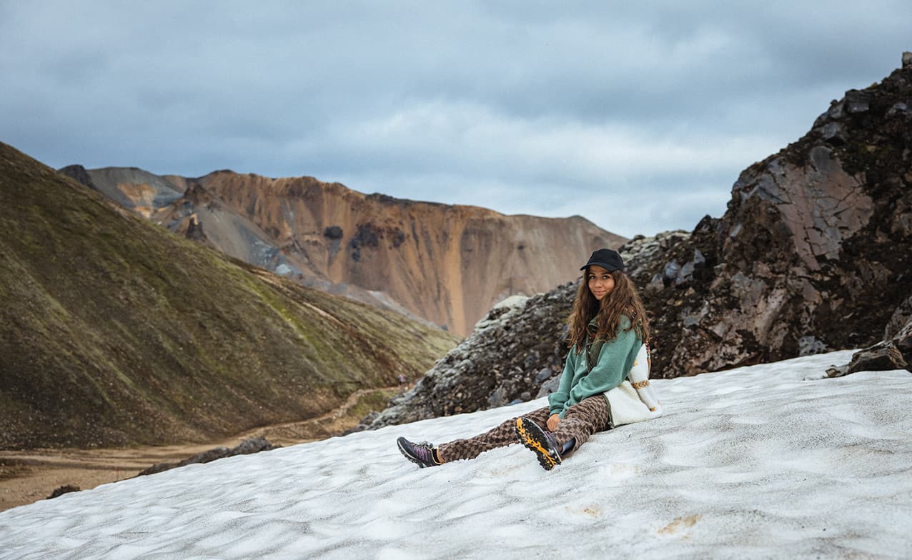 Reaching the mountains we’ll also pass by two volcanic craters, Bláhylur, Ljótipollur, filled with gorgeous blue water. Another picture perfect opportunity alert! Last but not least, time for our ultimate destination, the magnificent Landmannalaugar. Apart from epic hikes along the trails surrounded by rainbow-colored mountains, 'People's Pools' offer a geothermal oasis with hot springs. To jump into and recharge batteries before the ride back... sounds like a perfect plan!