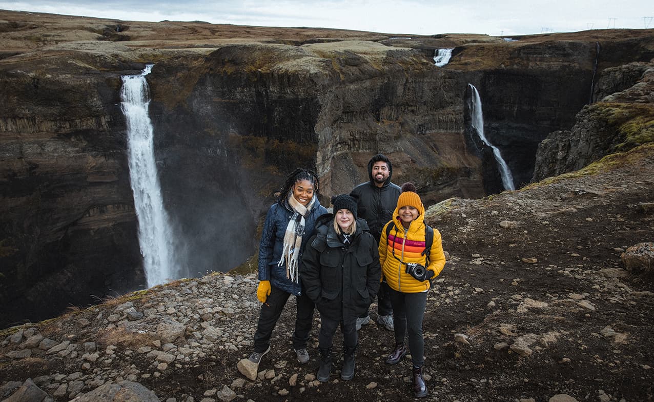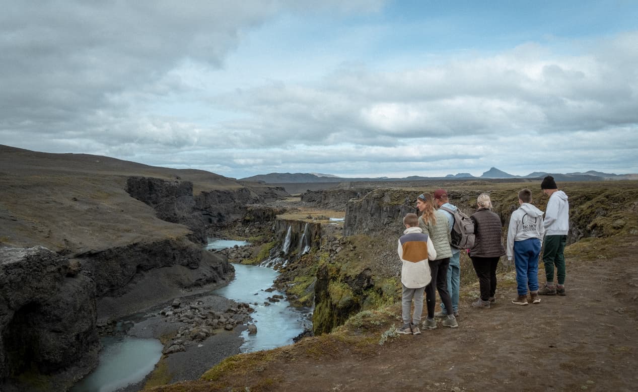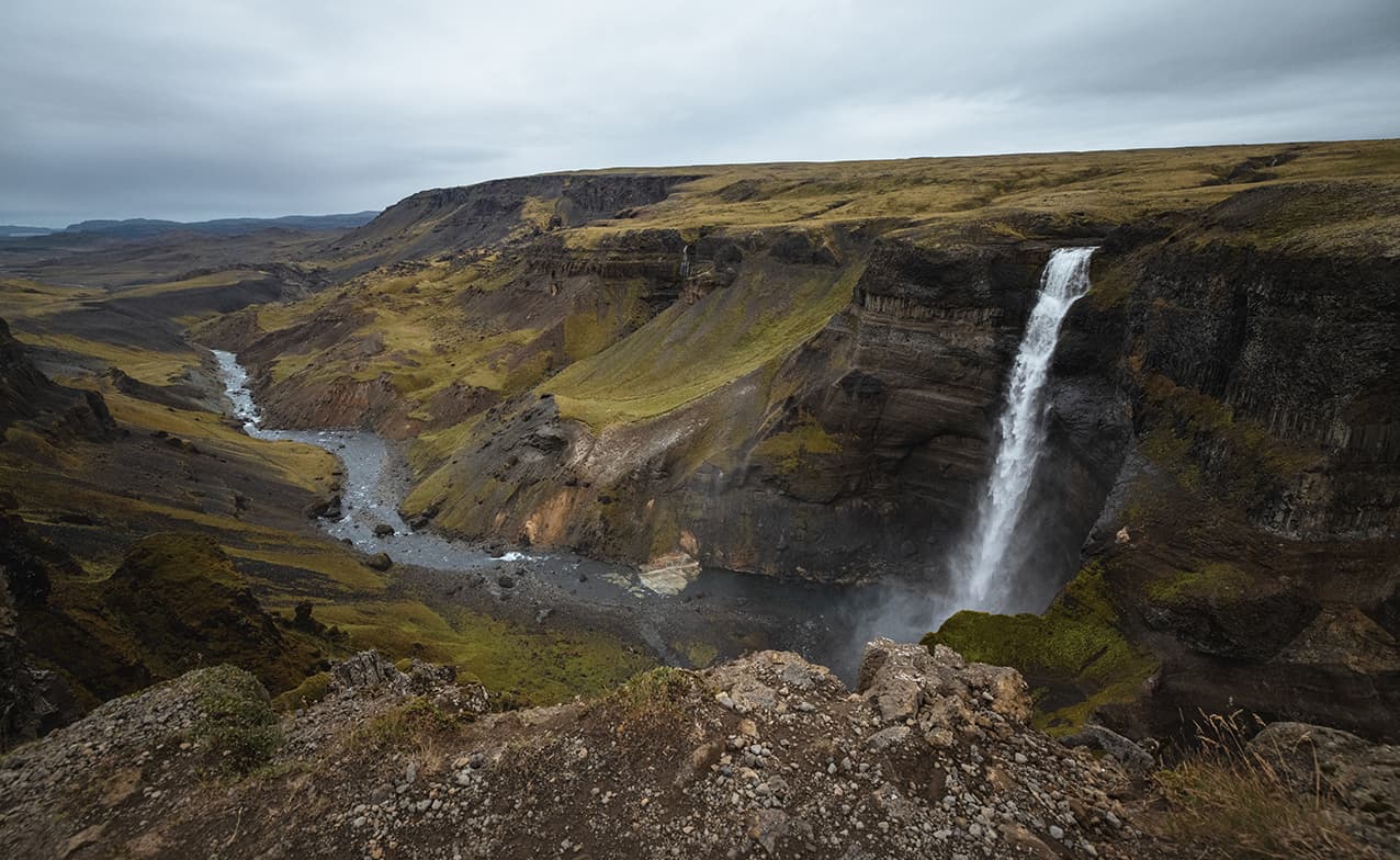 Let's jump on board our Super Defender Jeep and traverse the bumpiest paths to take you to Icelandic Highlands. First astonishing pictures will be painted by the Hjálparfoss waterfall, near one of the most active icelanding stratovolcanoes called Hekla. Never enough of watching endless cascades of running water? Then it's time for a bigger player, the third largest waterfall in Iceland, named Háifoss. From the viewing spot nearby you’ll also have the chance to spot it together with Granni Waterfall and capture both waterfalls in a single frame. We'll also catch a glimpse of Sigöldufoss waterfall, located in the canyon often called Valley of Tears. The Highlands’ secret gorge is a real treat for photographers who marvel at the striking turquoise color of the water and the contrasting landscapes on both sides of the canyon.