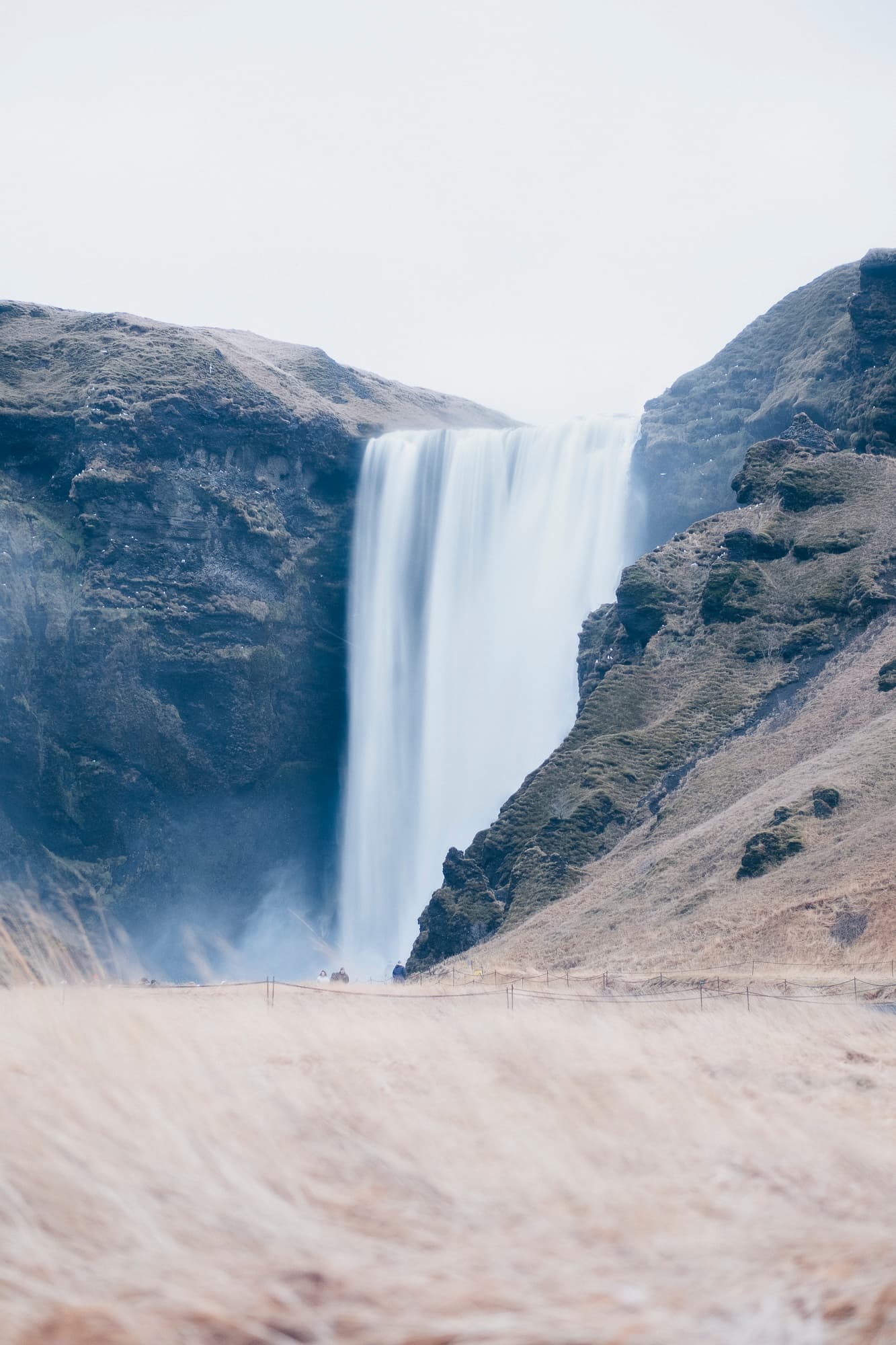 Next, venture towards the iconic Skógafoss Waterfall. Marvel at the sheer power of the cascading water as it plunges 60 meters into a serene pool below. Take a leisurely stroll along the Skógá River and capture stunning photos of the picturesque landscape. For the adventurous, climb the stairs to the top of the waterfall for a panoramic view that will leave you in awe.