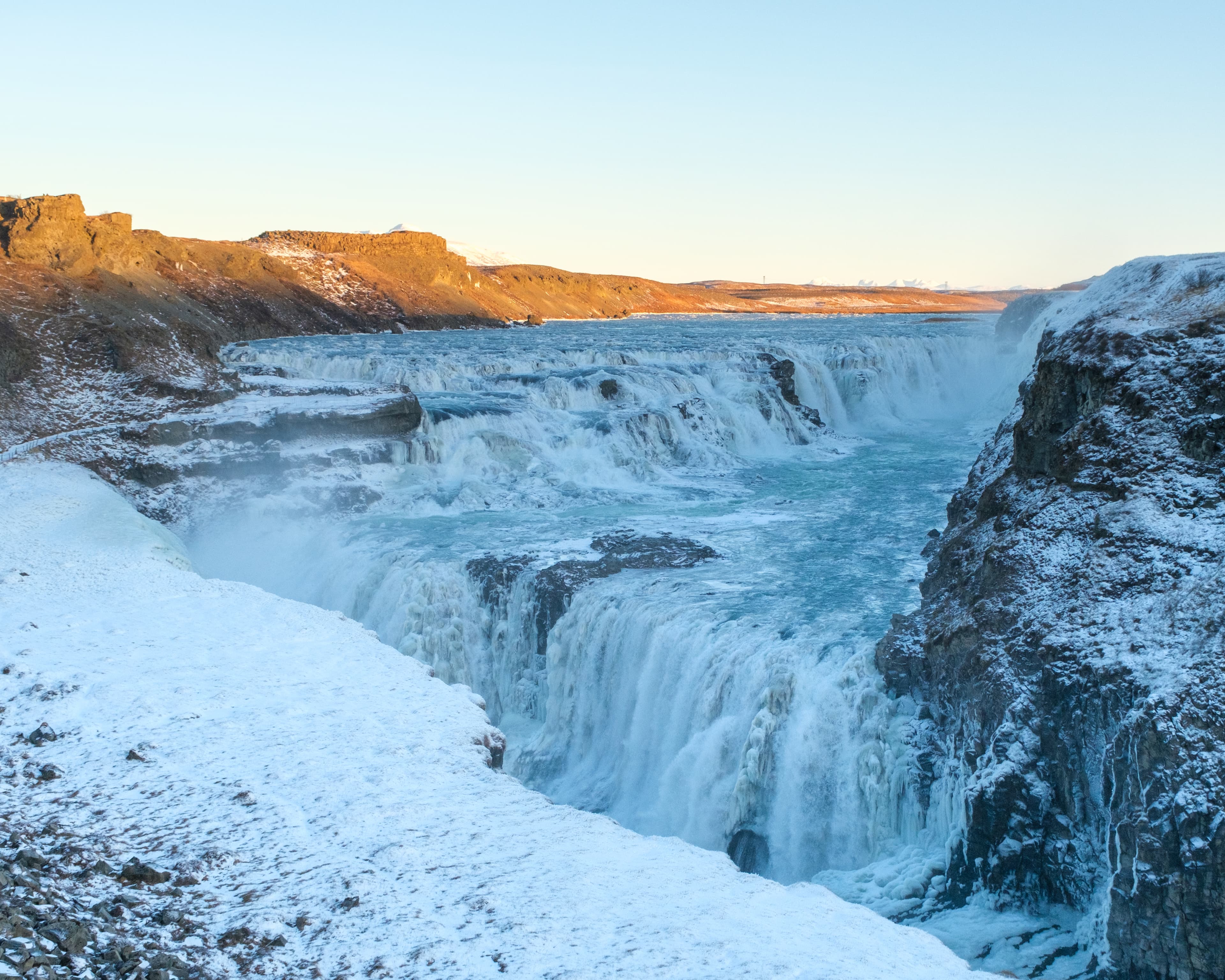 - Gullfoss waterfall, nestled in the Hvítá canyon, offers nothing short of a spectacular scenic view. When conditions permit, stroll all the way down to experience its force and beauty up close