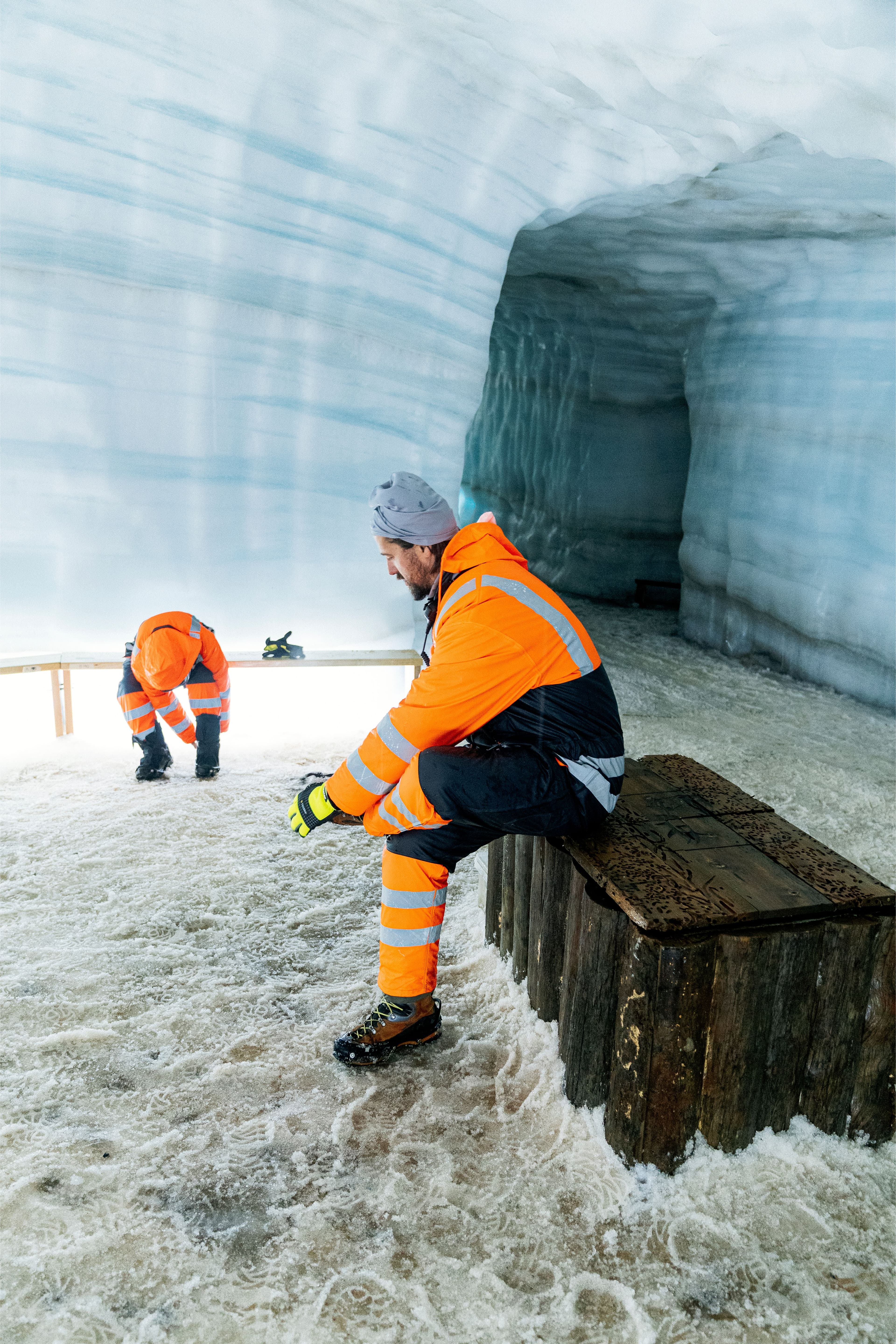 Meet us at Klaki Base Camp, on the glacier's edge - where our adventure will begin. A thrilling snowmobile ride takes us over the immense expanse of ice & snow to the ice tunnel entrance, nestled high atop Langjökull. We spend 1 hour inside the tunnel before reboarding our snowmobiles for the return ride.