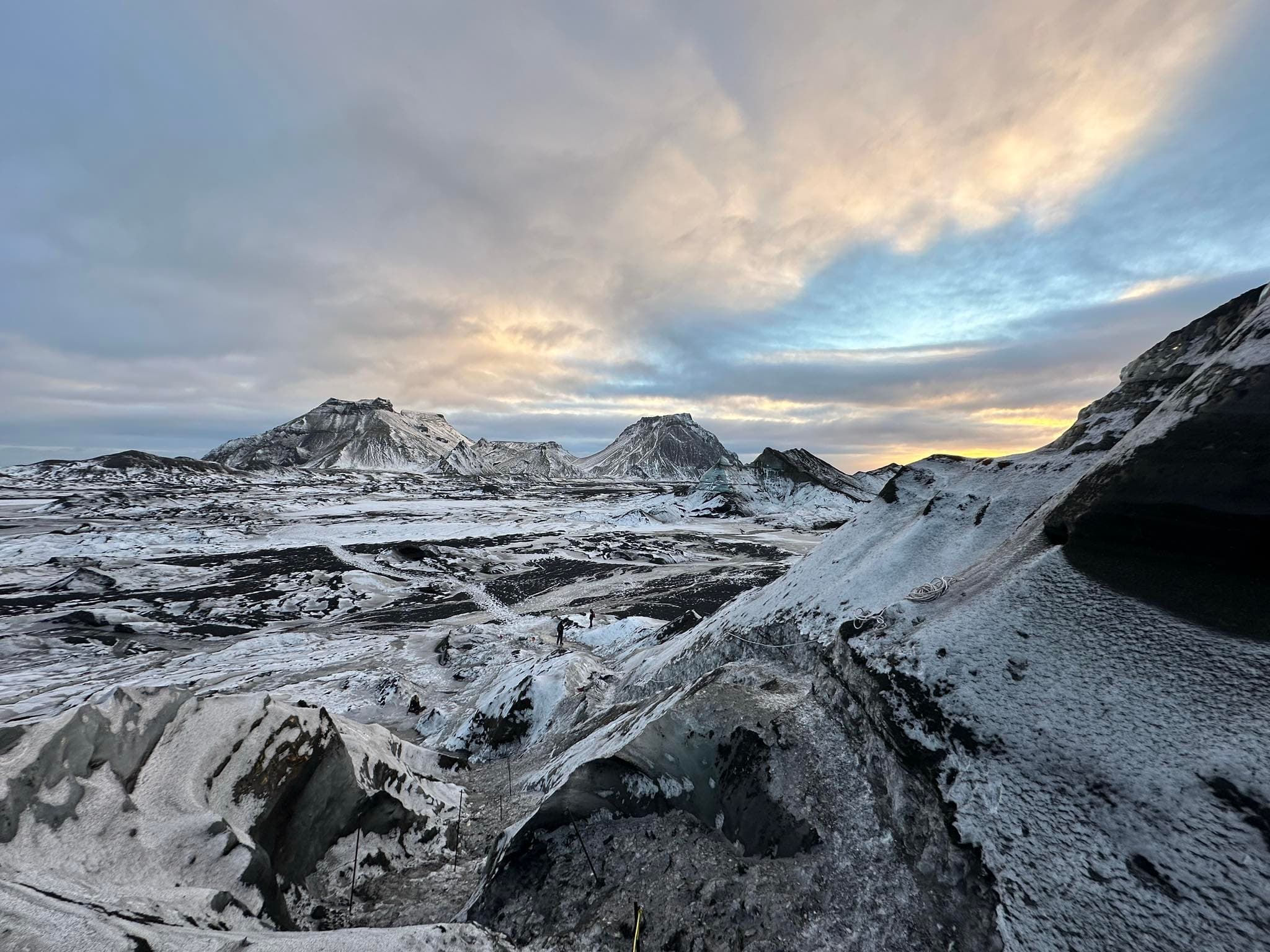 Mýrdalsjökull glacier is renowned as one of Iceland's most iconic landmarks, and it's the source of the captivating Kötlujökull glacier. This glacier, named after the formidable Icelandic Volcano Katla, conceals the mighty volcano beneath its icy embrace. Over time, this colossal ice mass has slowly descended from the volcanic mountain, giving rise to some of Iceland's most remarkable natural ice caves.