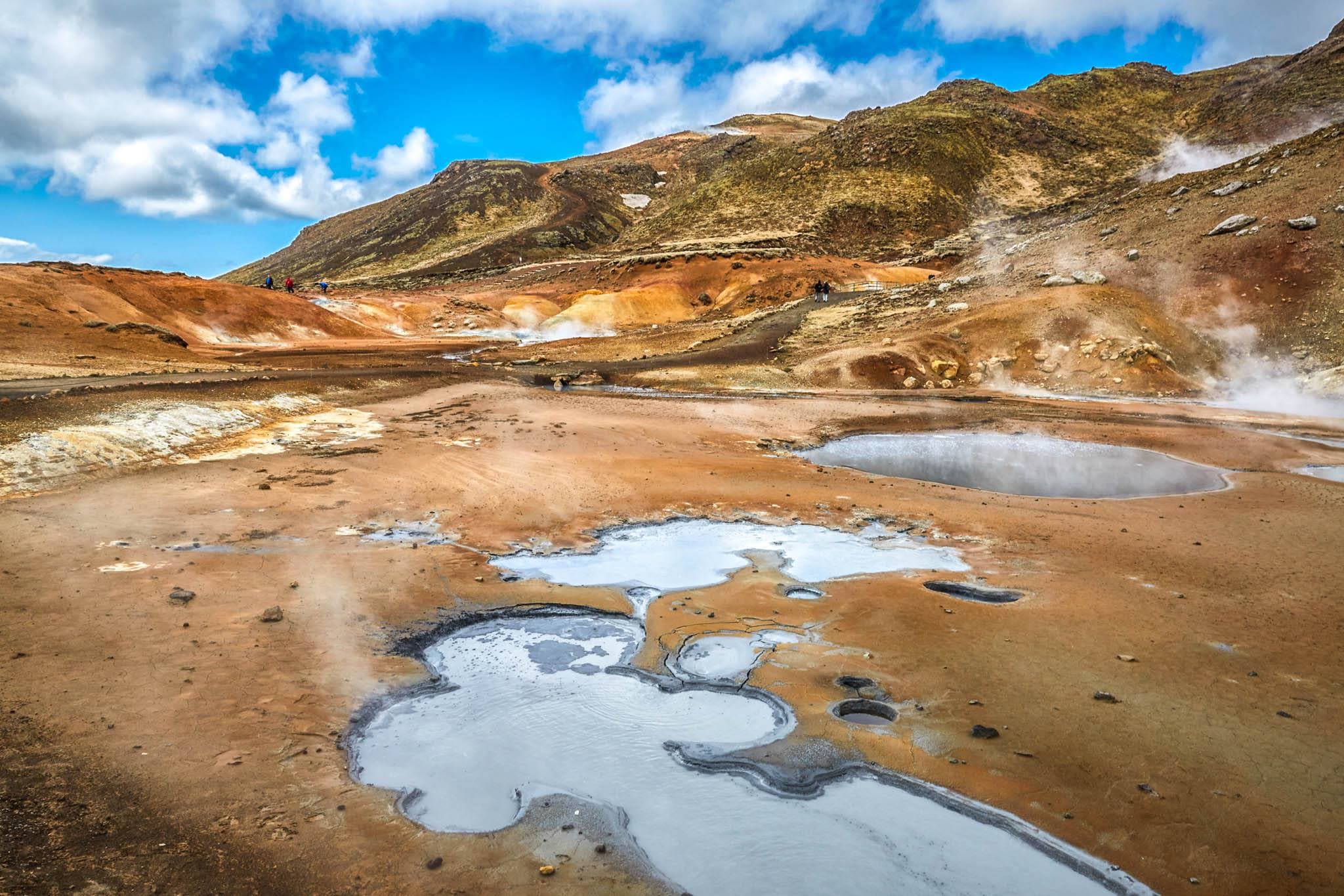 Geothermal Marvels and Hot Springs Next, immerse yourself in the geothermal wonders of the Reykjanes Peninsula. Visit the Gunnuhver hot springs, where boiling mud pools and steam vents create an otherworldly atmosphere. Feel the power of nature as you witness the raw energy of the earth at work, with steam rising from the ground and the scent of sulfur in the air.