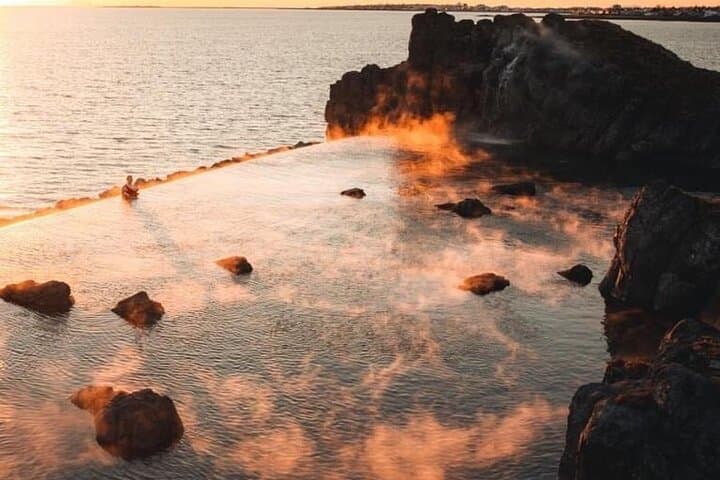 Indulge in ultimate relaxation as you unwind in the comfort of our air-conditioned car with our complimentary pickup/drop-off service to the Sky Lagoon or Keflavik Airport. Experience a profound connection to Icelandic bathing traditions and immerse yourself in a 7-step ritual. Take in the breath-taking panoramic views from the infinity pool and luxuriate in an experience where extravagant spa rituals and stunning North Atlantic views await.