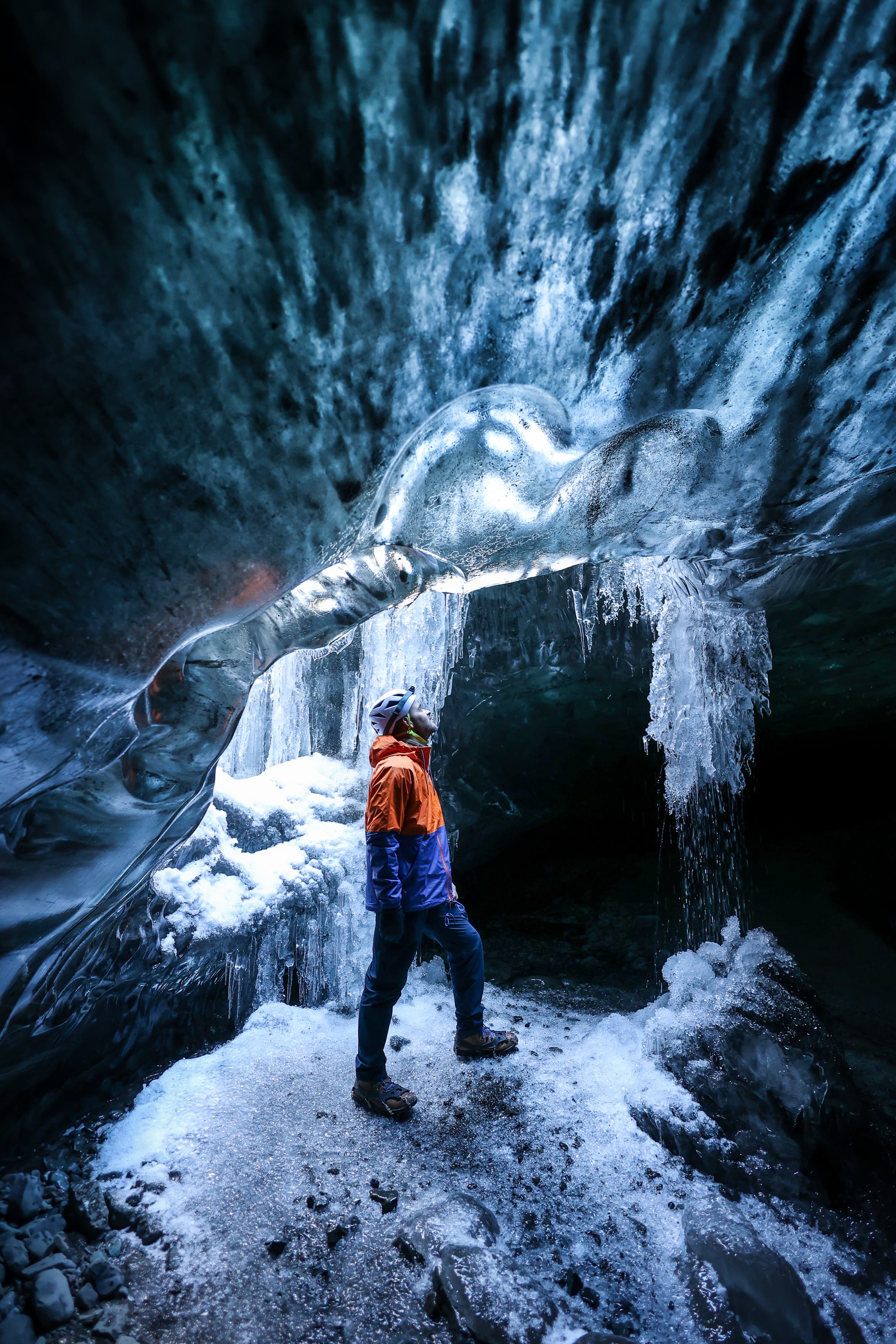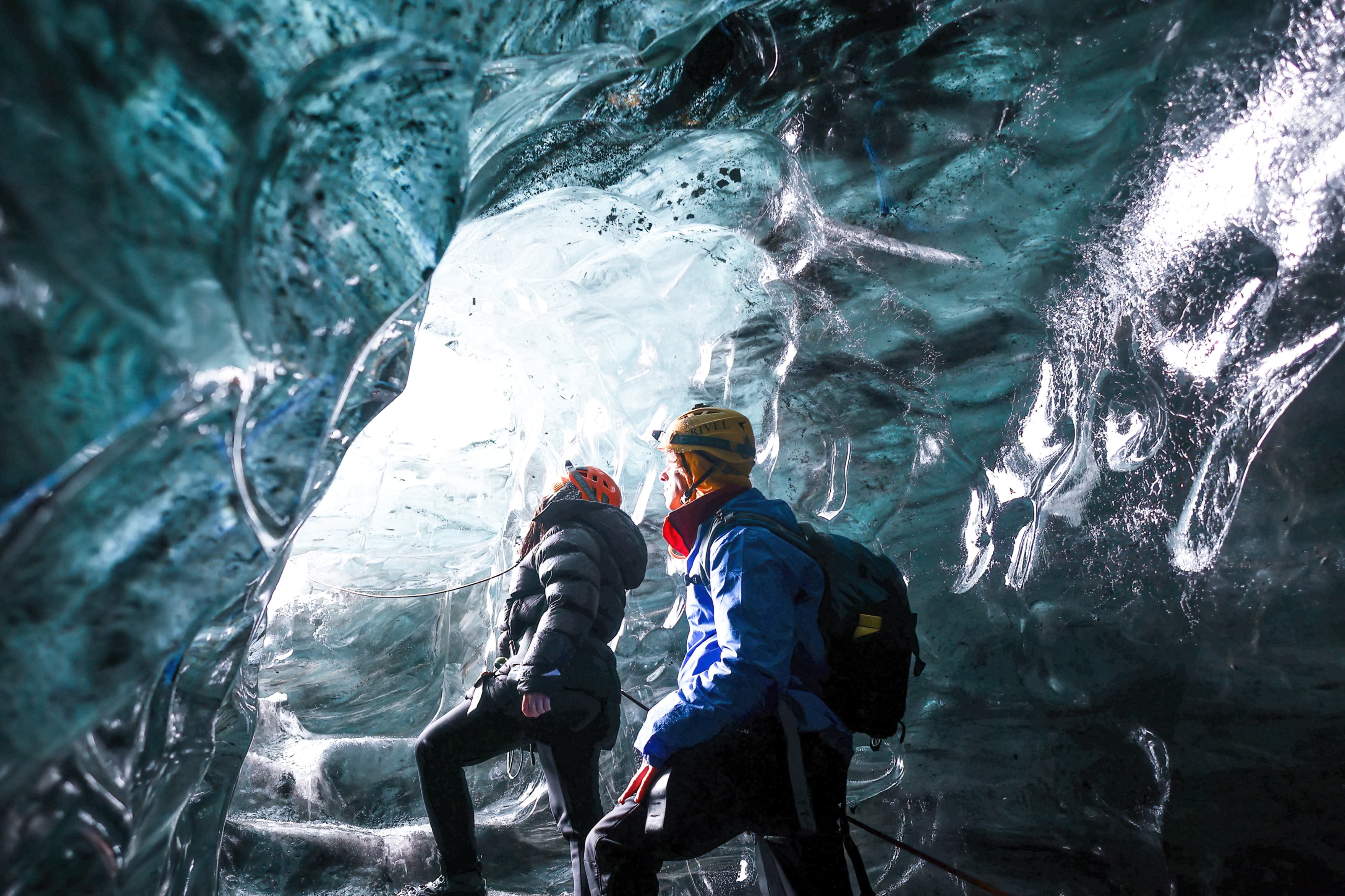 Your glacier guide will lead you onto one of Iceland’s most scenic outlet glaciers. As you immerse yourself in the blue ice, your guide will explain how the Ice Cave was formed. We will explore a Crystal Ice Cave (also known as Sapphire); a beautiful blue feature formed in the summer months as the glacier melts. Throughout the hike, you will learn about the history of Vatnajokull Glacier and how the ice works in nature.