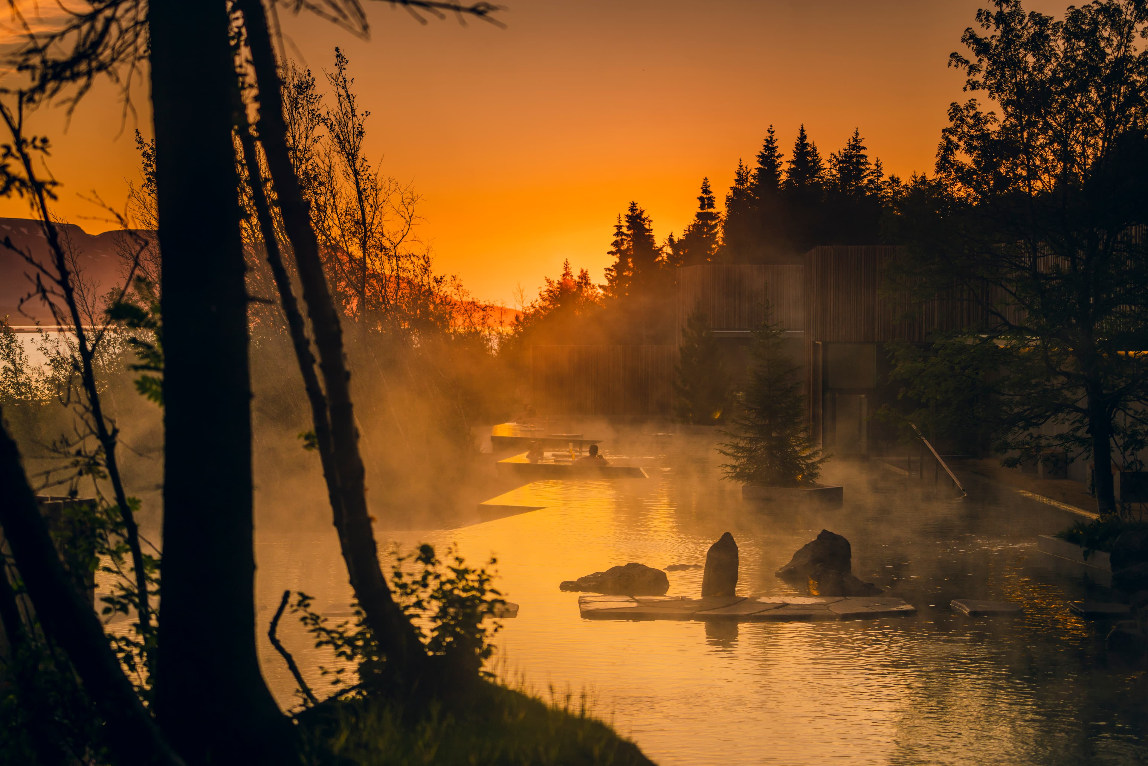 To warm up after your visit, we’ll invite you to relax at the Forest Lagoon, a geothermal oasis nestled in nature. Soak in the warm waters while taking in stunning views of the surrounding forest and mountains.