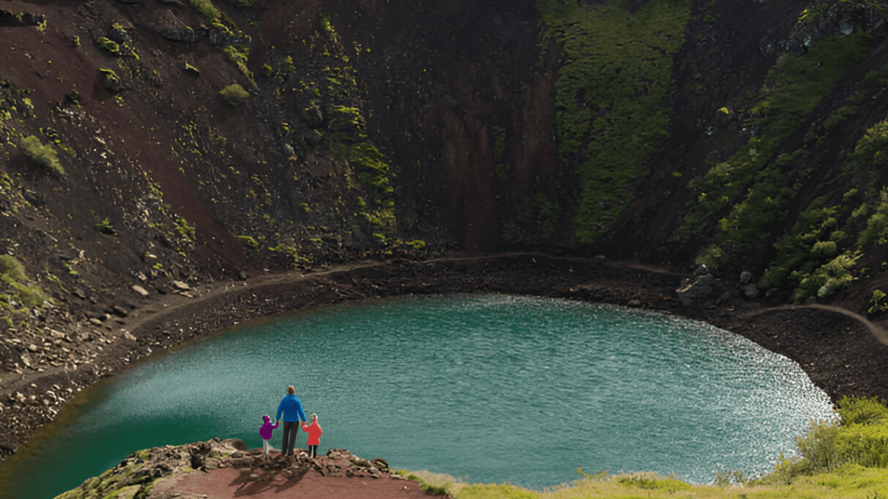 Finally, we'll go to Kerið Crater, a lake inside a volcano. You can walk around it and see the great view.