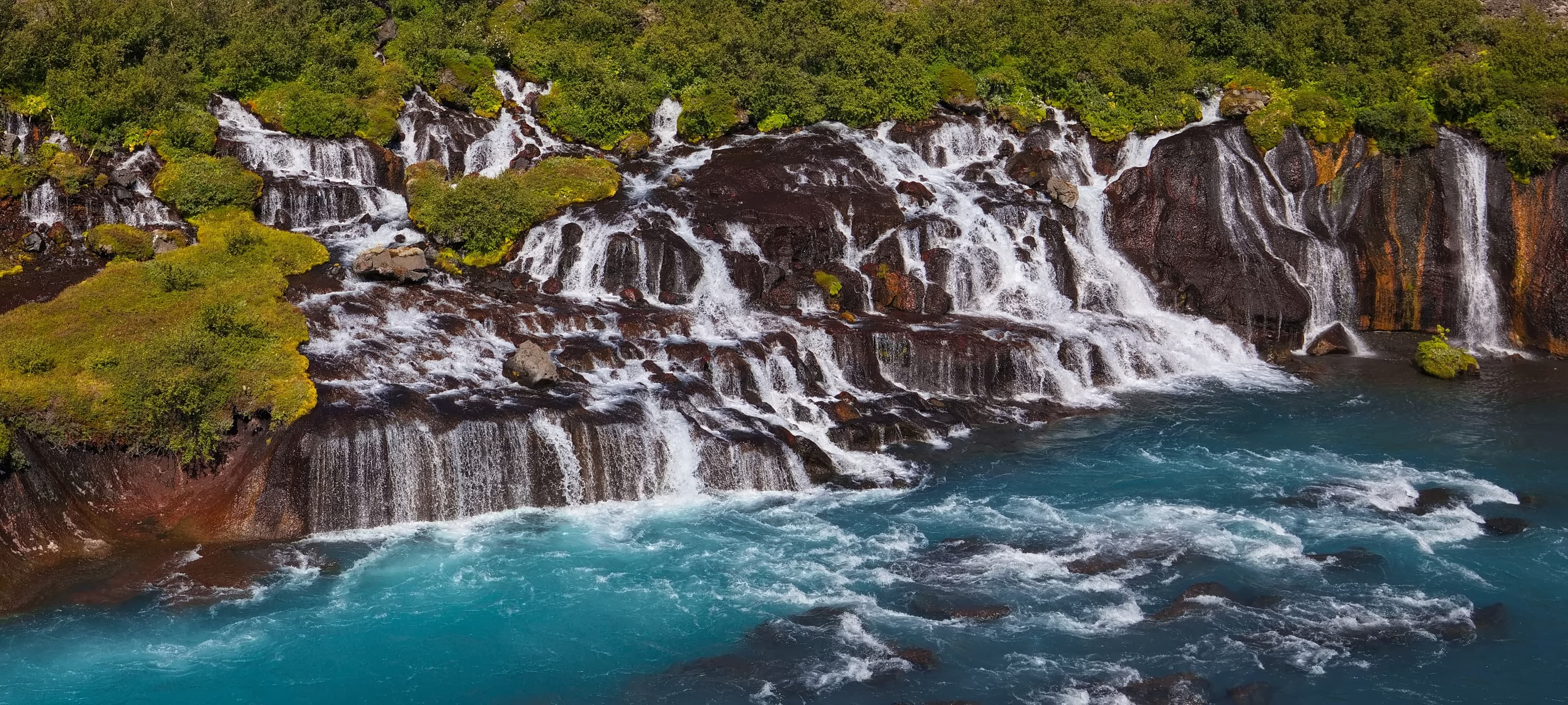 Hraunfossar and Barnafoss Waterfalls