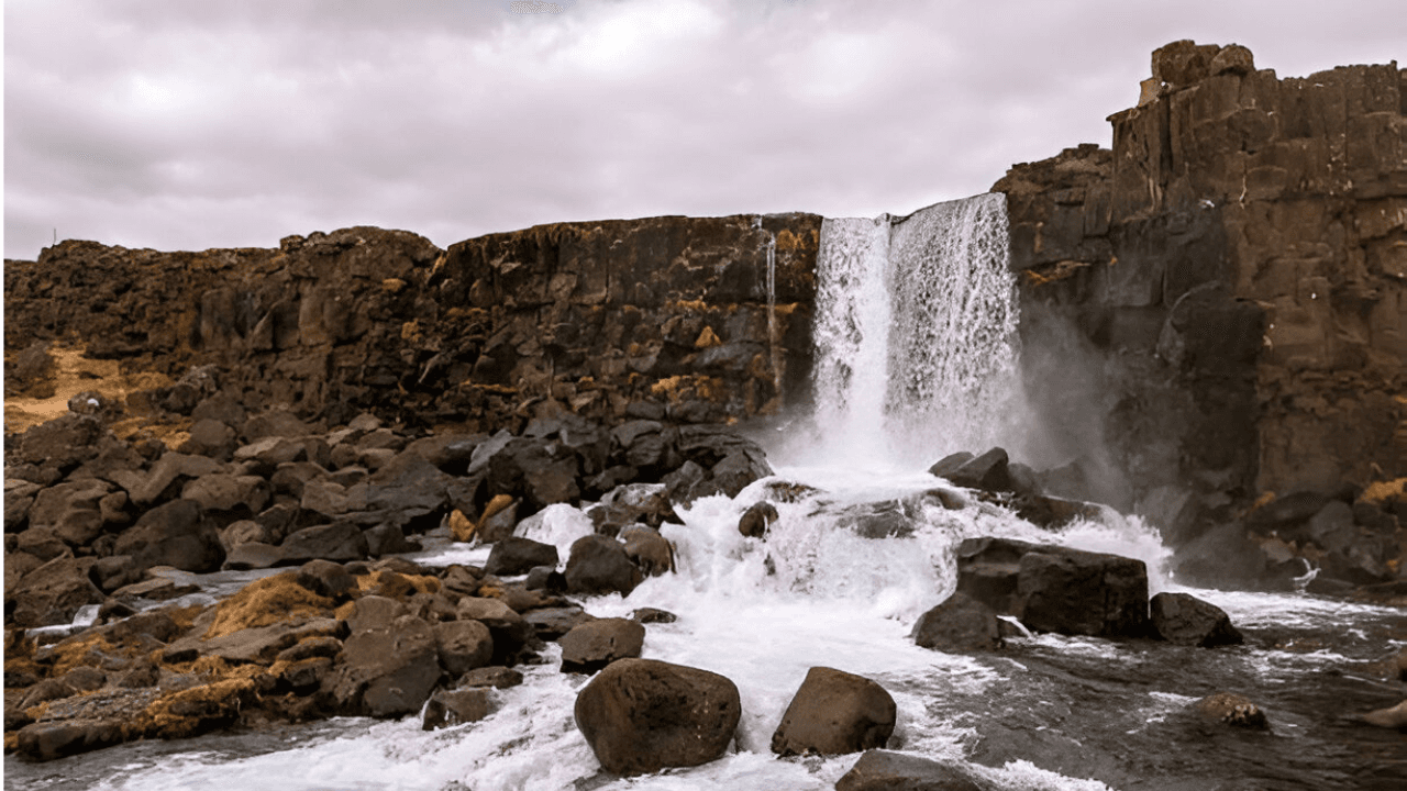Next, we venture to Oxarafoss waterfall, nestled within Thingvellir. This picturesque waterfall cascades down from the river Öxará, offering stunning photo opportunities and a moment of tranquil beauty amidst the rugged landscape.