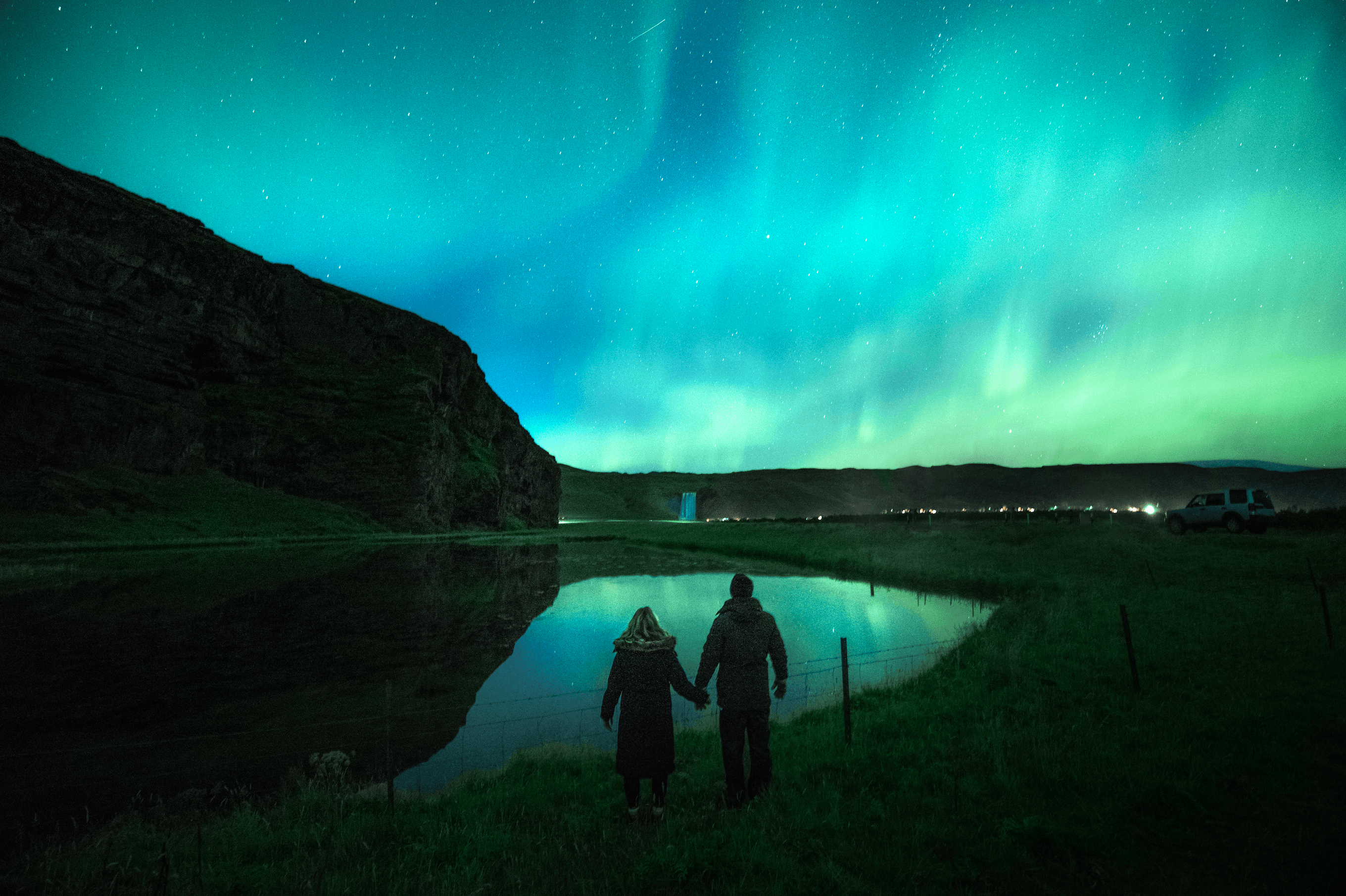 Your guide will pick you and your group up from your accommodation in the early evening before sunset and you will set out in the direction of the clearest skies before nightfall. Experience every sensation — hear cascading waterfalls, feel the crisp breeze, and savor earthy Icelandic flavors. With cozy seating, weatherproof structures, and optional heating, you’ll enjoy comfort no matter the conditions. The Northern Lights in Iceland can only appear wherever there is no cloud cover. Therefore, the places we go to will always vary but can include locations such as the Snaefellsnes Peninsula, the Reykjanes Peninsula, or the famous South Coast!