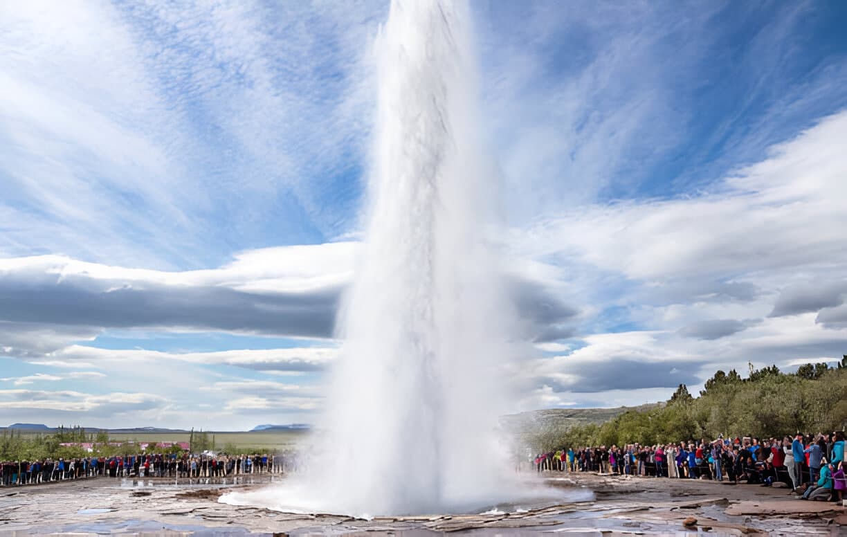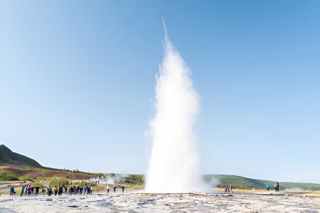 Next, we'll explore the geothermal wonderland of Geysir. Witness the bubbling hot springs, steaming vents, and the famous Strokkur geyser erupting dramatically every few minutes, sending a column of hot water high into the air. Enjoy the unique sights, take a walk around the area, and capture some memorable photos.
