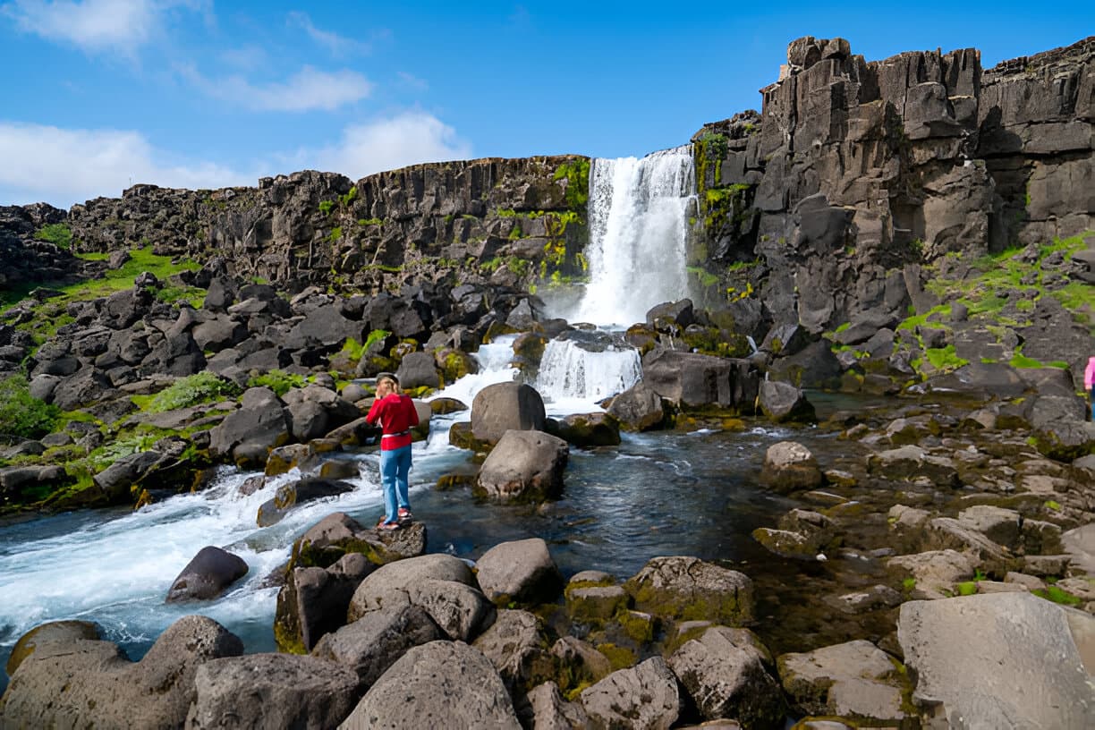 Our adventure begins with a visit to Þingvellir National Park , a UNESCO World Heritage site of immense historical and geological significance.Imagine walking between the North American and Eurasian tectonic plates – a truly unique experience! Your guide will bring to life the stories of Iceland's ancient parliament, where laws were made under the open sky centuries ago.